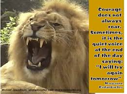 We are NOT courageous by nature. I use the prayer that others call “Serenity Prayer”; but not for serenity. I use that prayer for courage.