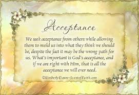 So, what really happens when I accept me. It becomes okay for me to stop trying so hard to win your approval. It only matters that I maintain my own. This is a daily process. I get to sit in meditation most mornings, so I can check into what is going on with me. I get to see what is lying under the surface of my incredible self-centered fears and find out what the stories are I am telling myself.